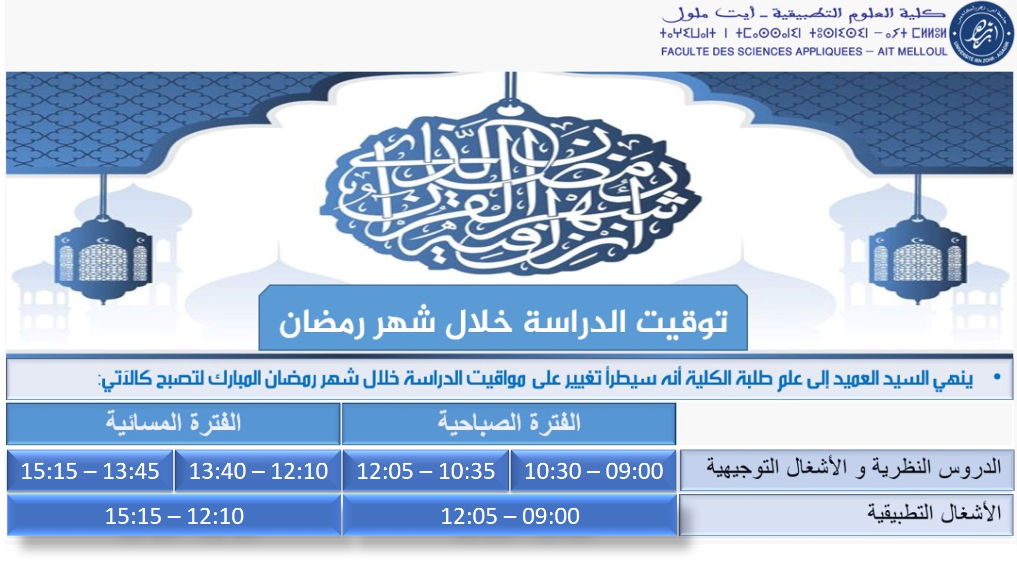 وعليه، يُرجى من جميع الطلبة الاطلاع على الجداول المحينة والالتزام بالتوقيت الجديد